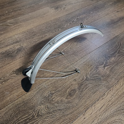 Pakettiin sisรคltyy hopeinen lokasuoja ja kuralรคppรค, terรคksiset aisat kiinnikkeineen sekรค lokasuojan pรครคlle tuleva rolleri.