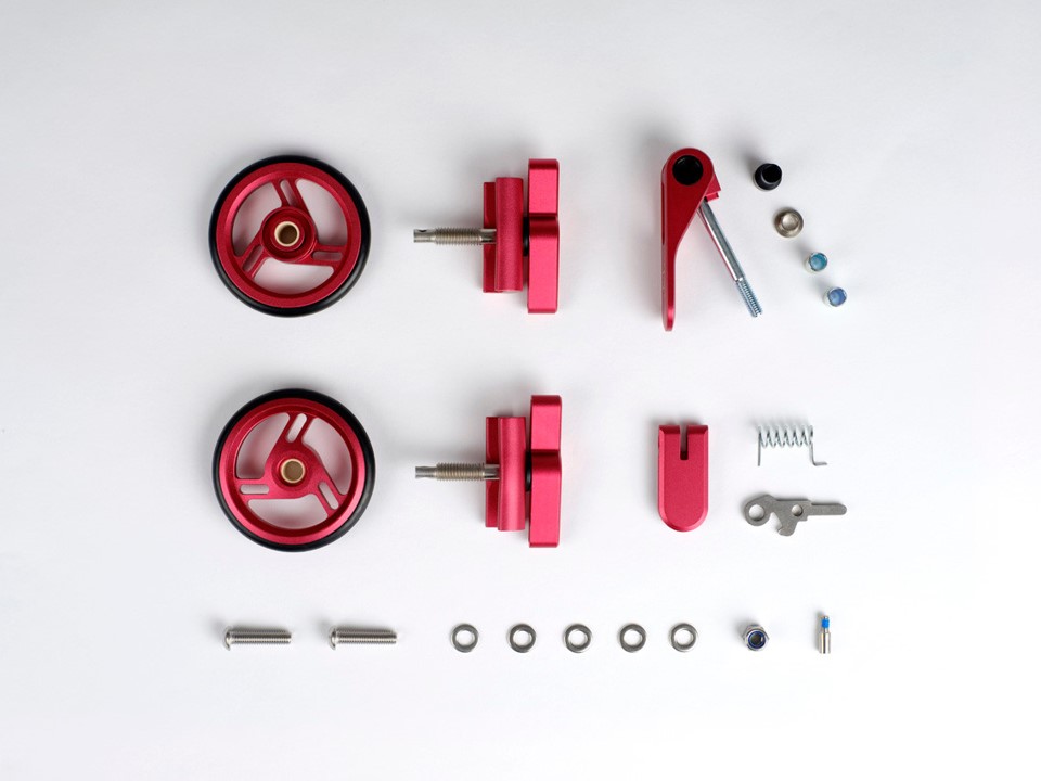 Sarja sisรคltรครค suuremmat roller wheelsit, keskinivelen lukituslevyn ja vรครคntimen ja satulatolpan kiristimen, kaikki tyylikkรคissรค vรคreissรค.