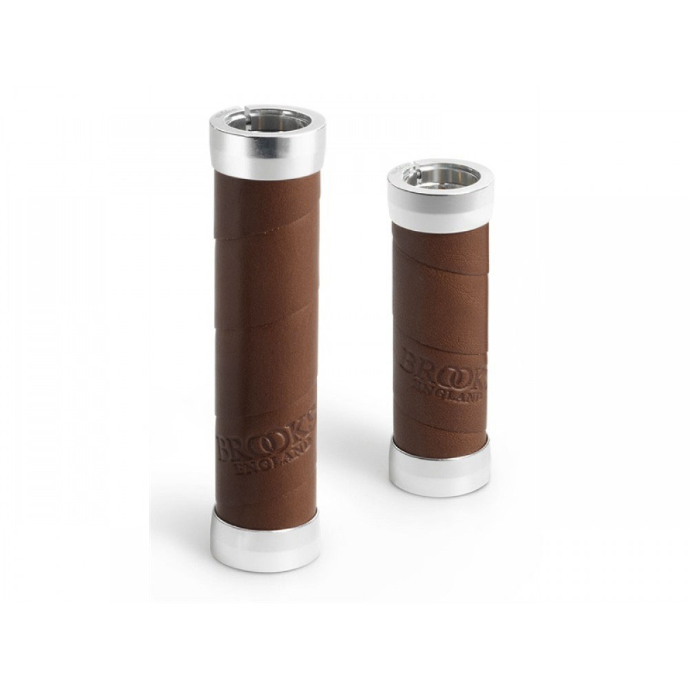Nahkaiset Brooks Slender -gripit ovat saatavilla kaikissa Brooksin satuloita vastaavissa väreissä. Kahvojen pituudet 100mm ja 130mm, eli tämä malli soveltuu erityisen hyvin 3-vaihteisiin pyöriin, joissa on kierrettävä vaihdekahva.