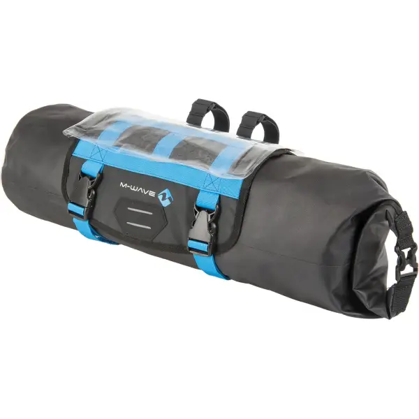 M-Wave Rough Ride Bikepacking vedenpitävä tankolaukku on ohjaustankoon kiinnitettävä kuljetusratkaisu, joka on suunniteltu bikepacking-käyttöön sekä pidemmille retkille, joissa varusteiden suojaaminen säältä on tärkeää.