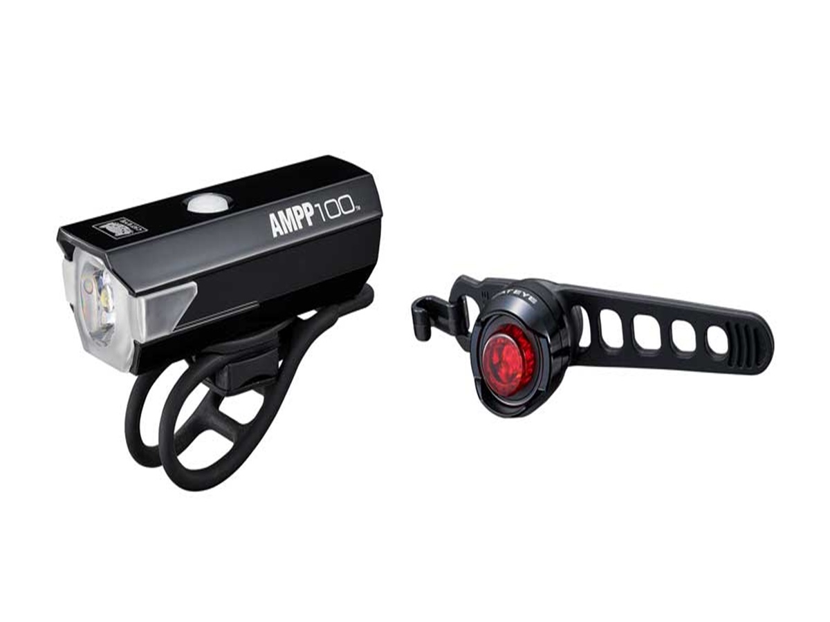 Cateye AMPP100 etuvalo + ORB takavalo -valosetti, Tässä kätevässä valaistussarjassa on USB-ladattava ajovalo sekä kompakti ja selkeästi näkyvä takavalo.