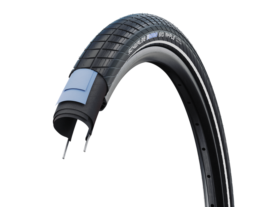 Schwalbe Big Apple rengas 60-559 (26″) on erittรคin leveรค ja mukavuuspainotteinen kaupunki- ja trekking-pyรถrรคn ulkorengas, joka hyรถdyntรครค Schwalben Balloonbike-teknologiaa.