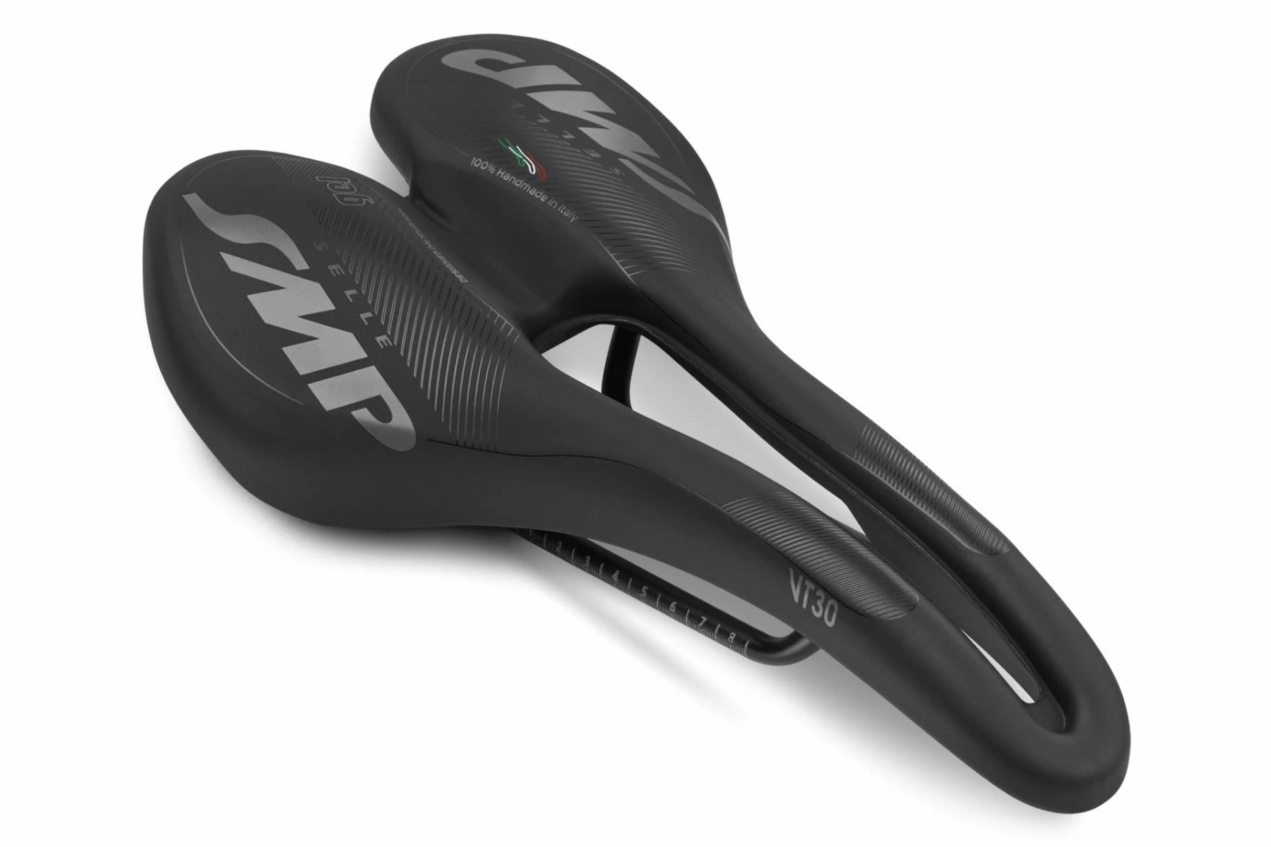 SMP VT30. Tyylikรคs, kompakti ja varustettu kaikilla ergonomisilla ominaisuuksilla, joista Selle SMP -satulat ovat tulleet tunnetuksi! Satulanย hiukan leveรคmpi muoto tekevรคt tรคstรค hyvรคn valinnan esimerkiksi sorapyรถriin ja maastopyรถriin, jos haet hieman pystympรครค tai mukavampaa ajoasentoa. Istuinluiden suositeltu leveys 12,6-15cm.ย Mattamustat kiskot viiimeistelevรคt satulan virtaviivaisen ilmeen. Satulan GEL- pehmuste vรคhentรครค pehmytkudoksiin koskevaa painetta -30%.