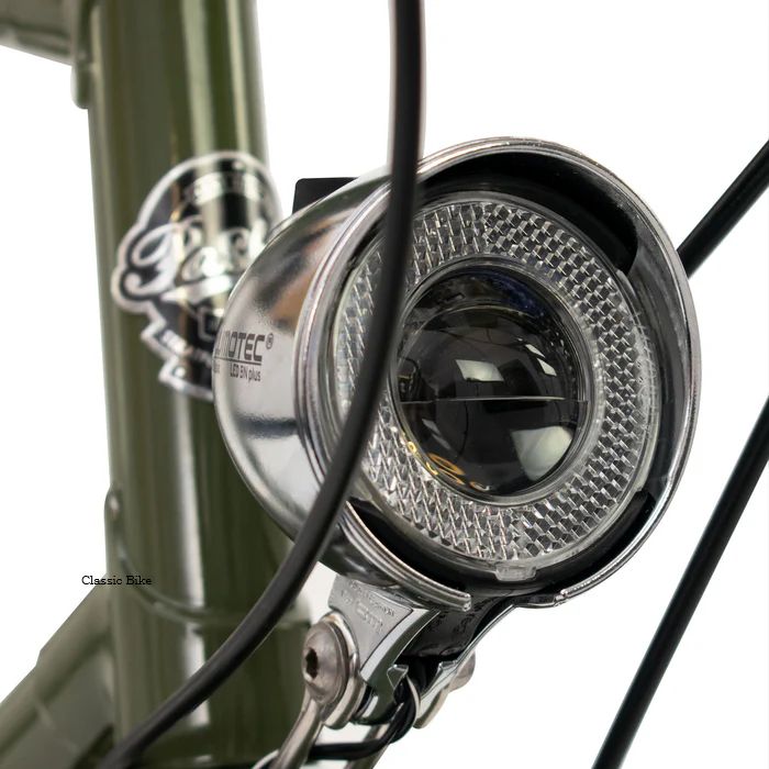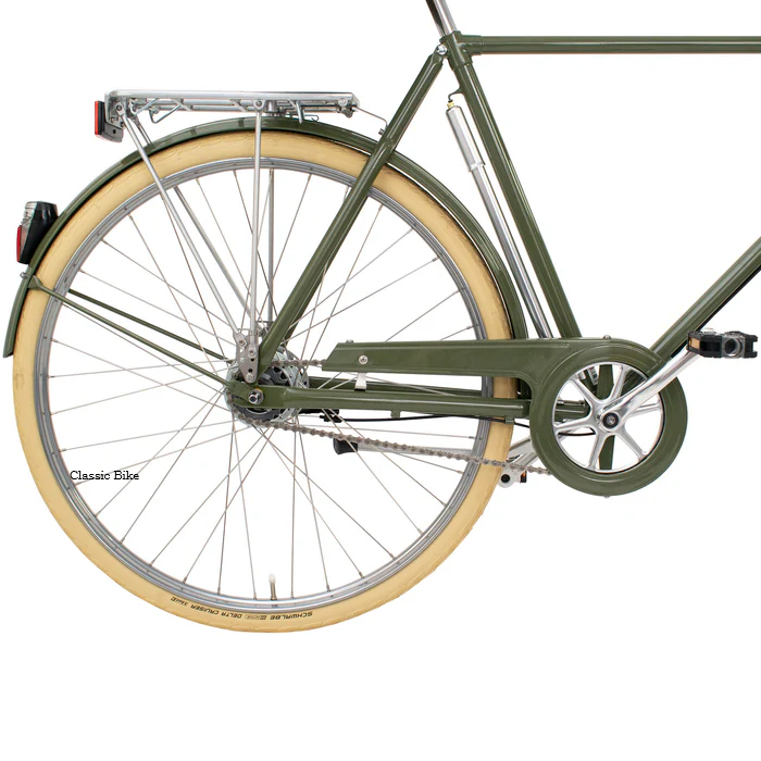 28 x 1 1/2″ Cream Schwalbe Delta Cruiser tyres with Kevlar Guard belt puncture protection and reflective side walls.