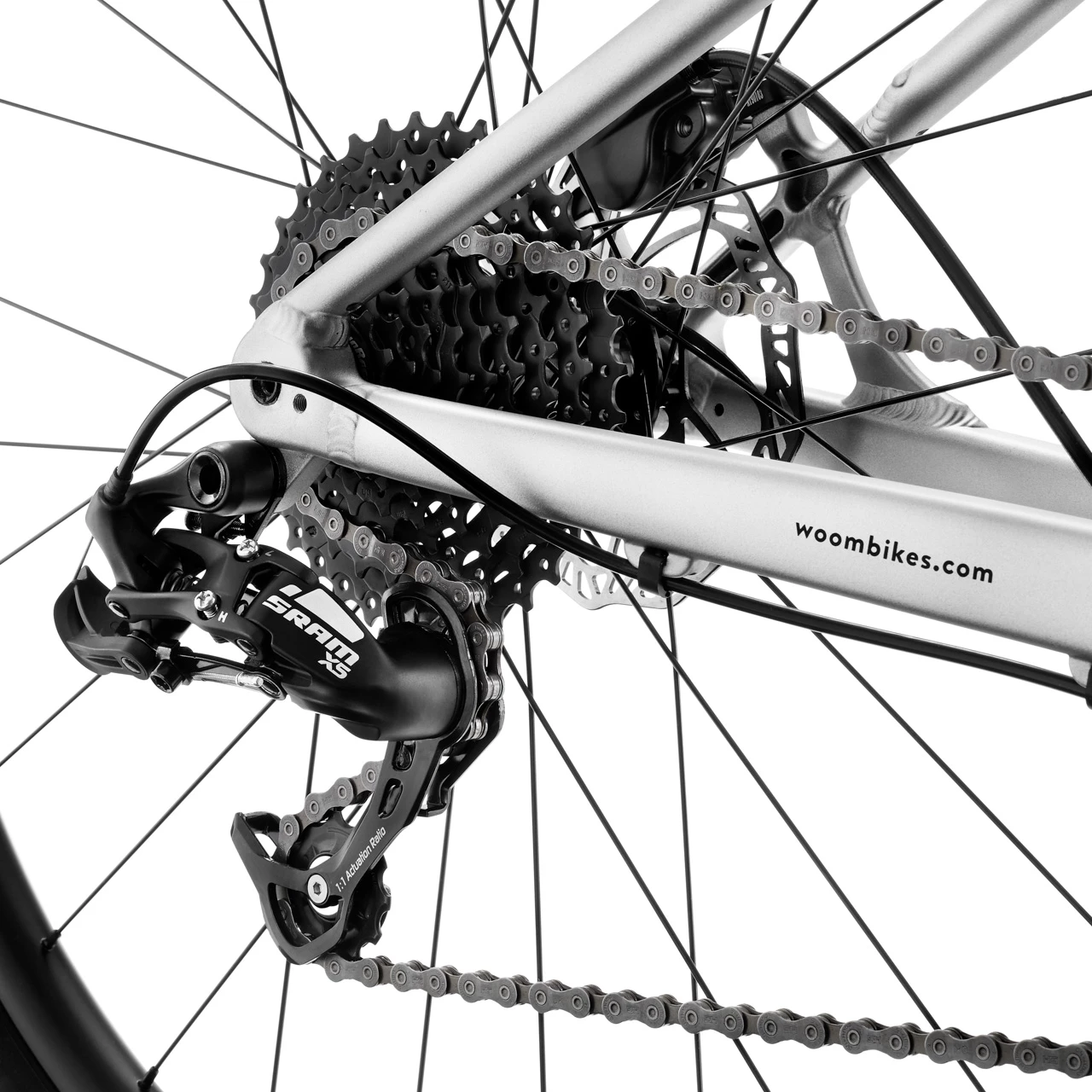 Erityisesti WOOM OFF-malliin alumiini-kannatin takaa maksimaalisen jäykkyyden vähäisellä painolla. Käännettävän flip-flop-muotoilunsa ansiosta se voidaan kääntää ja asentaa ylösalaisin ohjaustangon korkeuden muuttamiseksi.