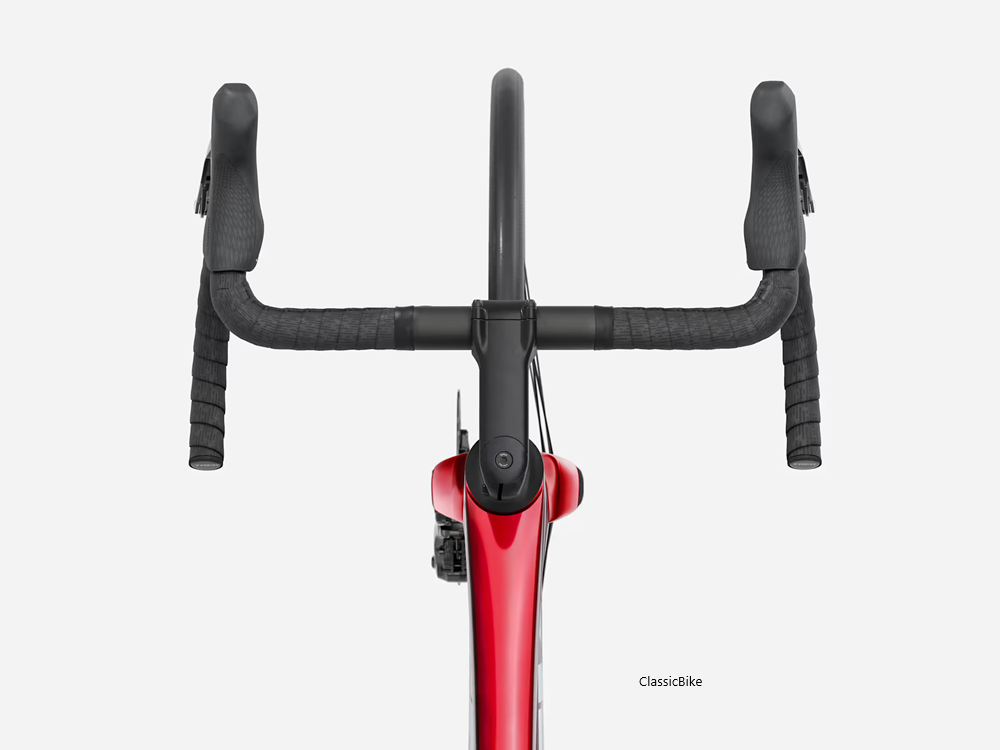 Madone Gen 8:ssa kahvakumit ovat kapeammalla kuin alakahvat, joten voit säätää ajoasentoasi sen mukaan, haluatko parantaa aerodynamiikkaa vai tehoa. Lisäksi kaksiosainen muotoilu tekee istuvuuden säädöstä nopeaa ja helppoa.