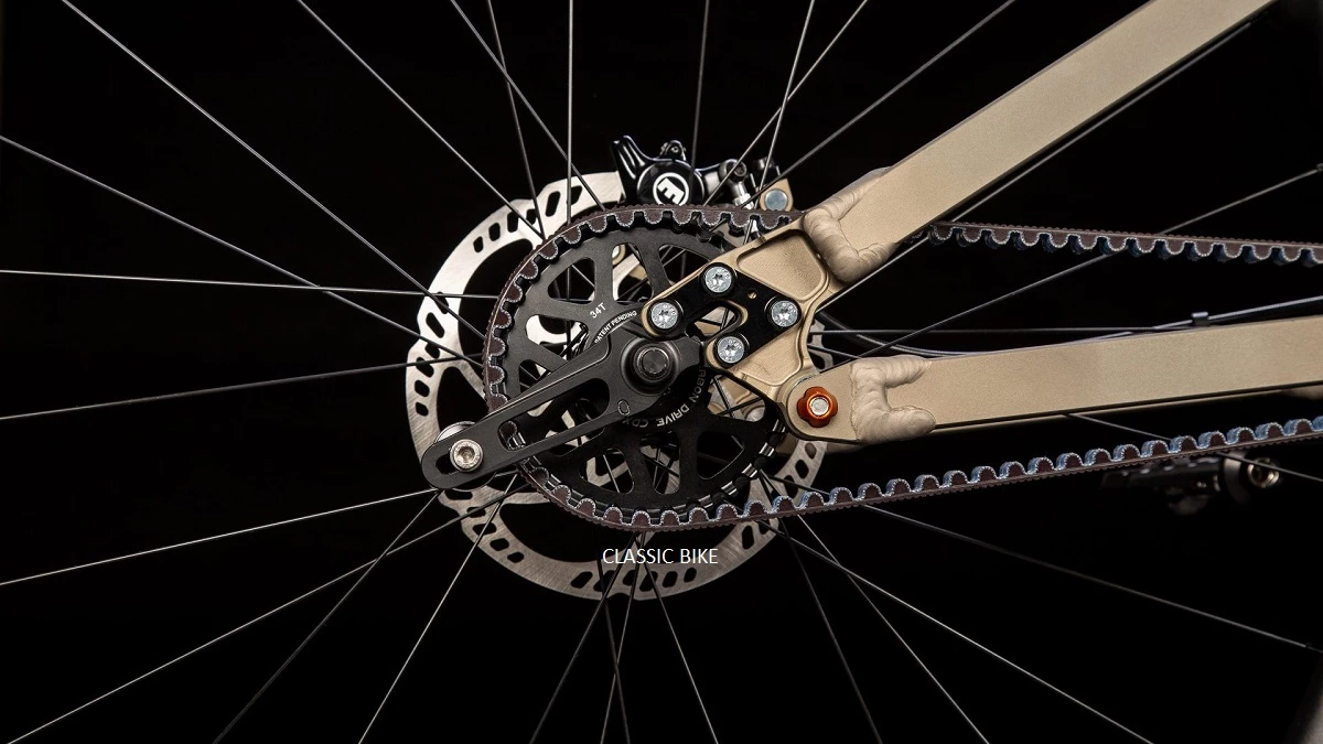 Gates Carbon Drive on hiilikuituvahvisteinen hammashihna, joka siirtää voiman tehokkaasti, tasaisesti ja pehmeästi takapyörään ilman venymistä. Keskiössä sijaitseva GBT3 -ohjuri pitää hihnan paikallaan kovassakin menossa ja optimaalisella kireydellä. Pyörässä on myös UT:n valmistama Overload- bashguard joka suojaa ratasta esim kivien ja puiden ylityksissä. Bashguard suojaa ratasta myös lialta ja lumelta ajettaessa haastavissa olosuhteissa.