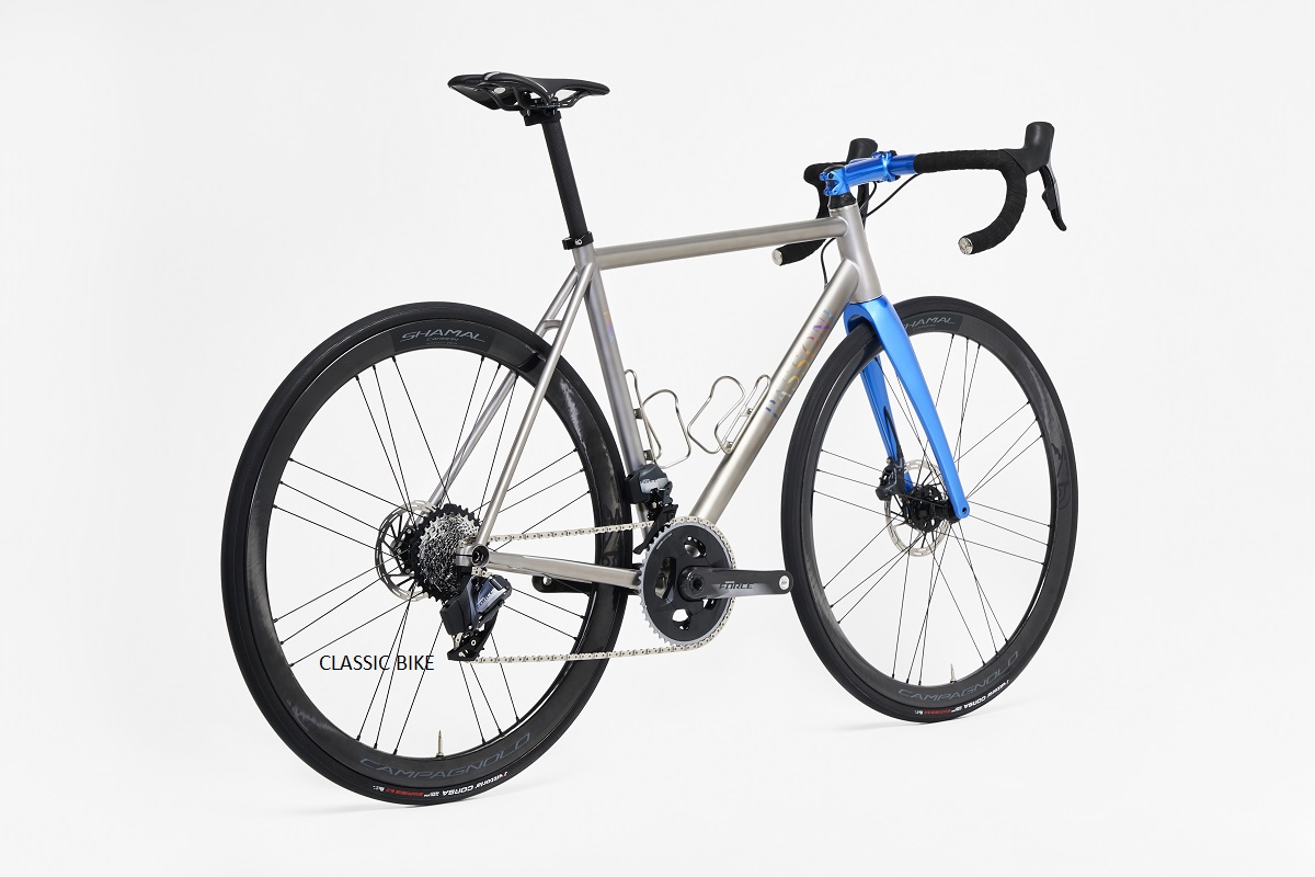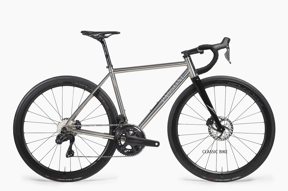 Passoni Prima Disco, upea käsintehty titaanirunkoinen maantiepyörä italiasta, todellinen taideteos. Passoni Prima Disco on valmistajan ensimmäinen ”ready-to-ride” – malliston pyörä. Runkoa valmistetaan kuudessa eri koossa (48-58cm) ja pyörän osasarjana toimii Shimano Ultegra 8270 Di2 ja vanteina Fulcrum Wind 42 kestävät mutta kevyet ja suorituskykyiset hiilikuitukiekot.