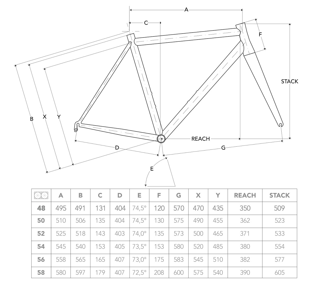 • Kuusi runkokokoa, 48, 52, 54, 56 ja 58cm