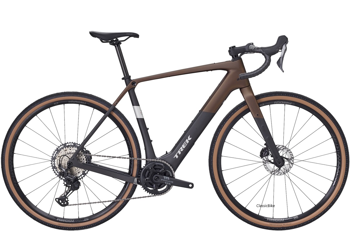 Trek Checkpoint+ SL 5 sähköavusteinen gravelpyörä, jossa yhdistyvät kevyt 500-sarjan OCLV-hiilikuiturunko, TQ HPR60 -moottori sekä endurance-henkinen gravel-geometria.