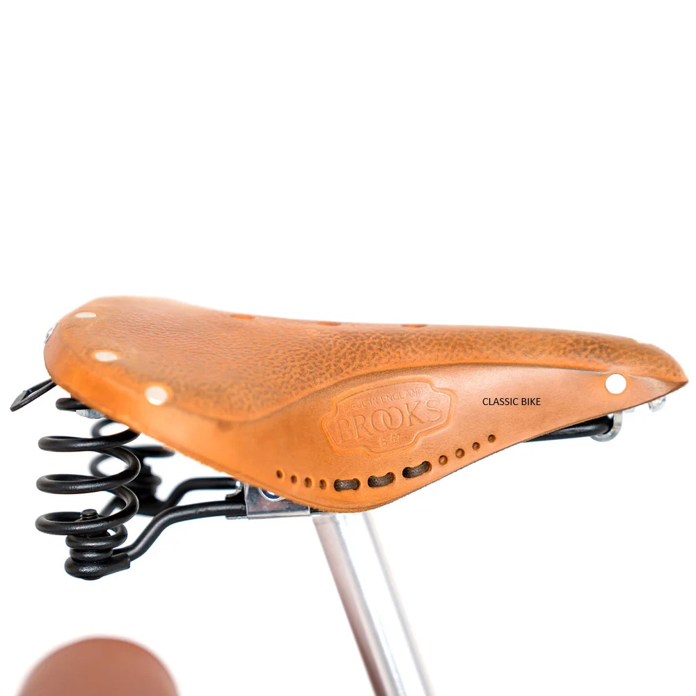 Honey brown Brooks B67 natural leather saddle with twin coil springs.
