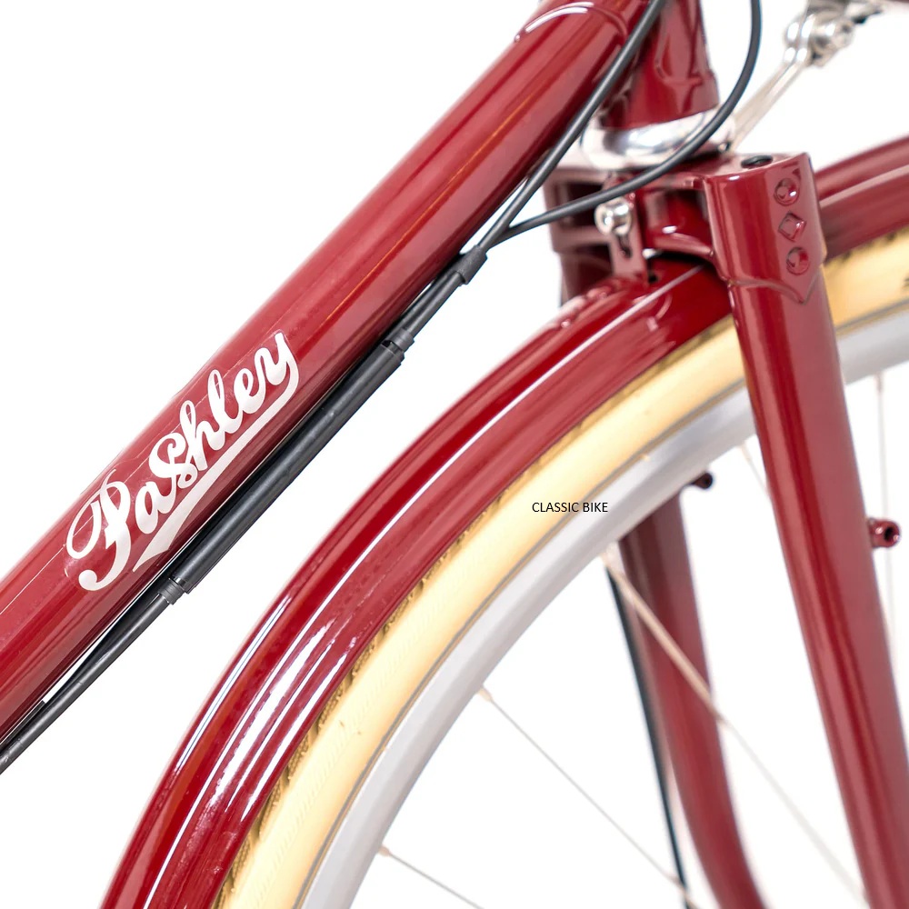 Elegantisti kaareva runko, joka muistuttaa yhtä Pashleyn varhaisimmista silueteista, on päivitetty nykypäivään – se on valmistettu käsityönä korkealaatuisesta Reynolds 525 teräksestä 3D-tulostetuilla liitoksilla, ja se on kevyempi mutta yhtä mukava kuin alkuperäinen teräsrunko. Yhdessä kevyesti kaarevan ohjaustangon ja sujuvasti rullaavien 28″ renkaiden kanssa se kannustaa luonnolliseen pystyasentoon, joka tuntuu yhtä hyvältä kuin miltä se näyttää, ja antaa sinun liikkua kaupungilla tyylikkäästi ja vaivattomasti.