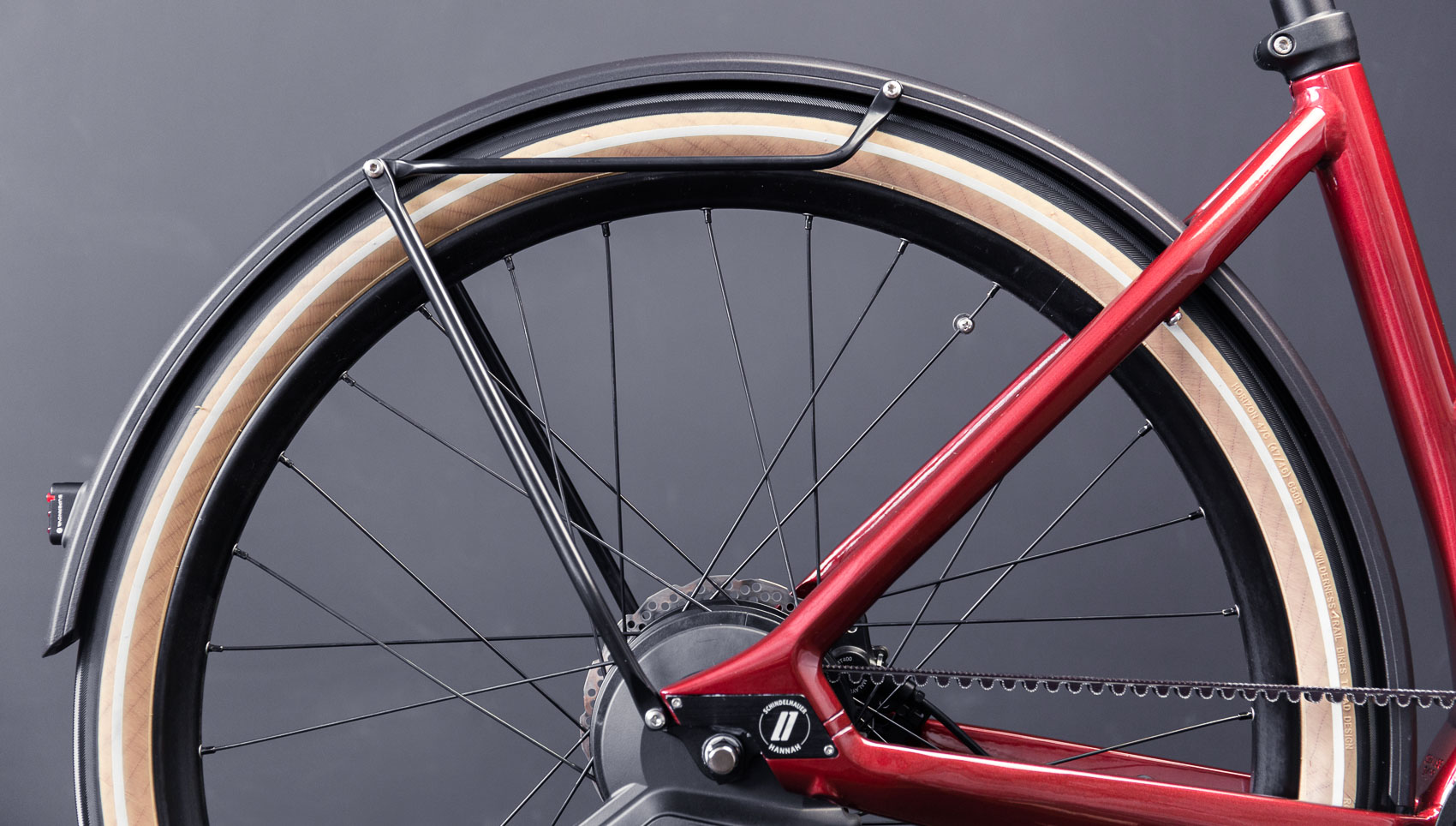 Schindelhauer Hannah Enviolo 1.0. Garnet Red non myös täysin varusteltu, erittäin laadukkaan rungon ja lisäksi vakiona on mm. Bosch Kiox näyttö joka tuo paljon hyödyllisiä toimintoja, Shimano MT401 hydraulijarrut, tehokkaat Supernova ajovalot ja uskomattoman hyvin rullaavat WTB Horizon 27,5″ renkaat.
