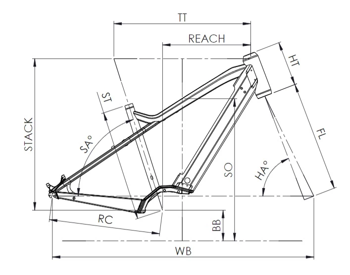 Runko Kevyt 6061 T4-T6 hydroformattu alumiinirunko vaihtelevalla paksuudella, rungon sisรคiset vaijerien lรคpiviennit