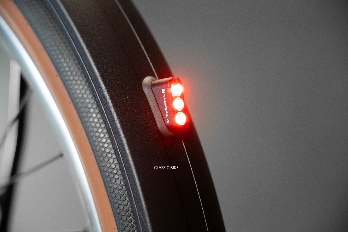 Valot: Supernova Mini 2 etuvalo ja E3 tail light lokasuojaan integroitu takavalo