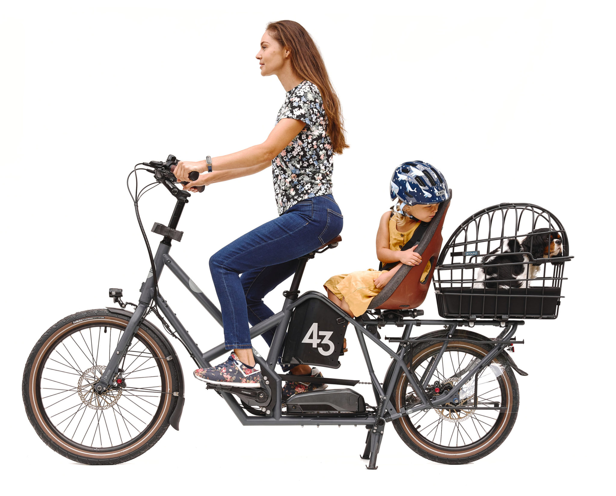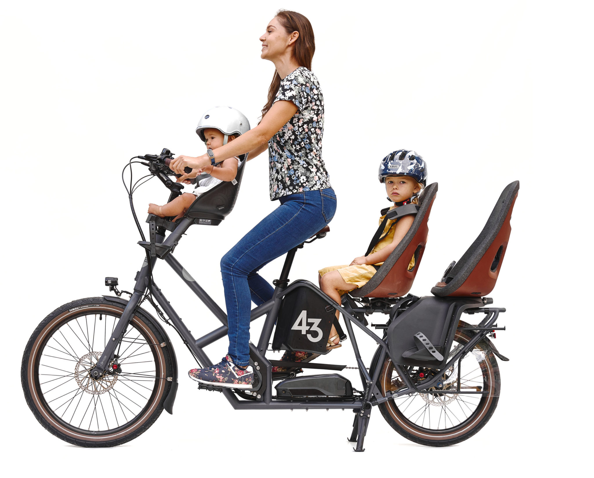 Bike43 on vain 10 cm ns. normaalia pyörää pidempi kiitos hienosti suunnitellun Footbox-systeemin – tavaratelineellä istuvan etummaisen lapsen jalat ovat tukevasti ja turvallisesti suojassa jaloille suunnitellussa laatikossa. Tämä tekee siitä erittäin miellyttävän ja ketterän ajettavan kaupunkikeskustassa ja pidemmillä matkoilla, myös isolla kuormalla.