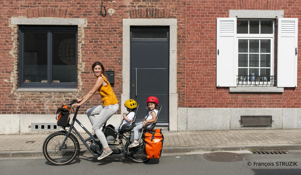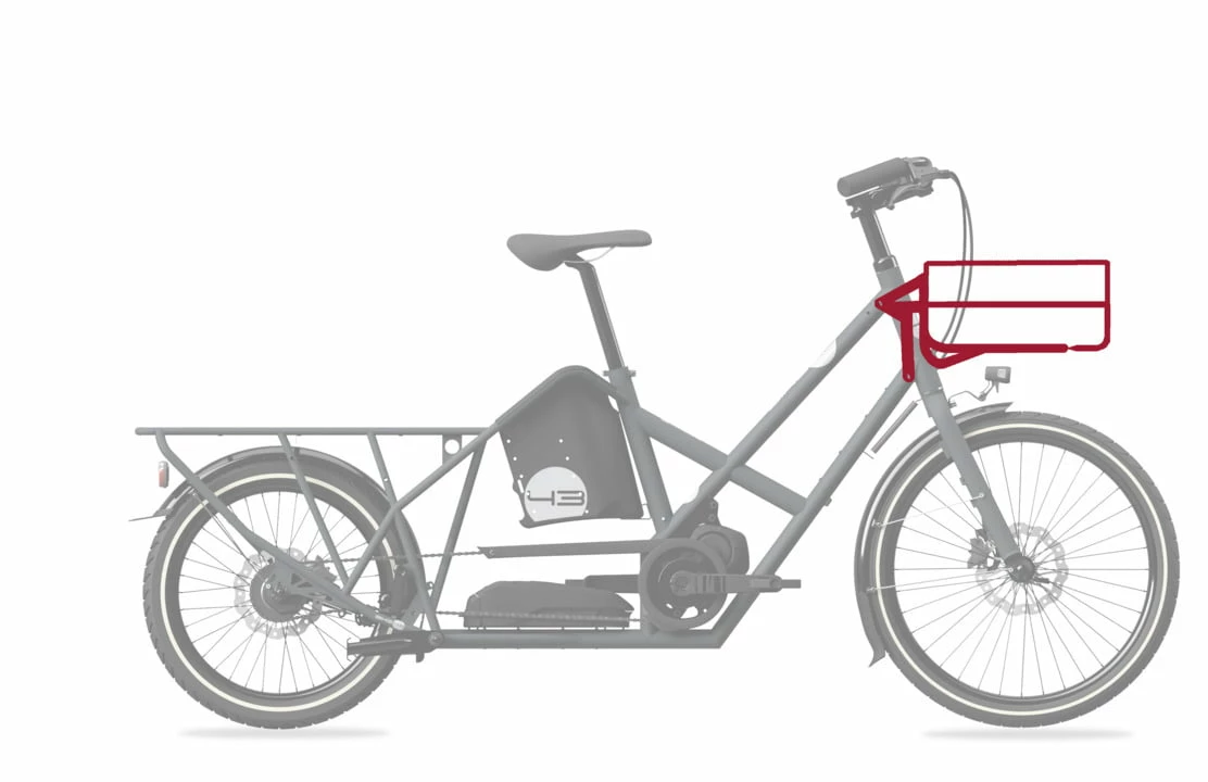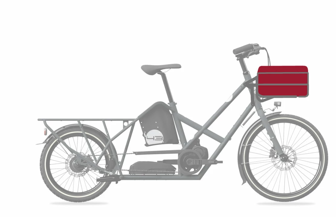 Bike43 pyöriin tämä istuin soveltuu tavaratelineen taka- ja etuosaan. Etuosassa lapsen jalat menevät pyörän jalkalaatikkoon (joten istuimen jalkatuki voidaan irrottaa).