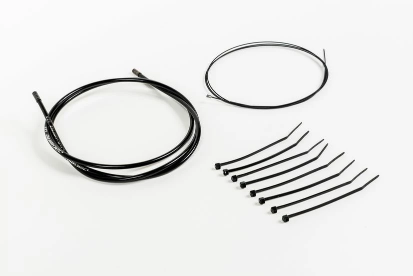 Valittavana on myös kaksi vaihdevaijeri ja kuori -settiä, jotka siis sisältävät vaijerin ja kuoren lisäksi myös vaijerin stopperin ja jousen (ns. dog leg).