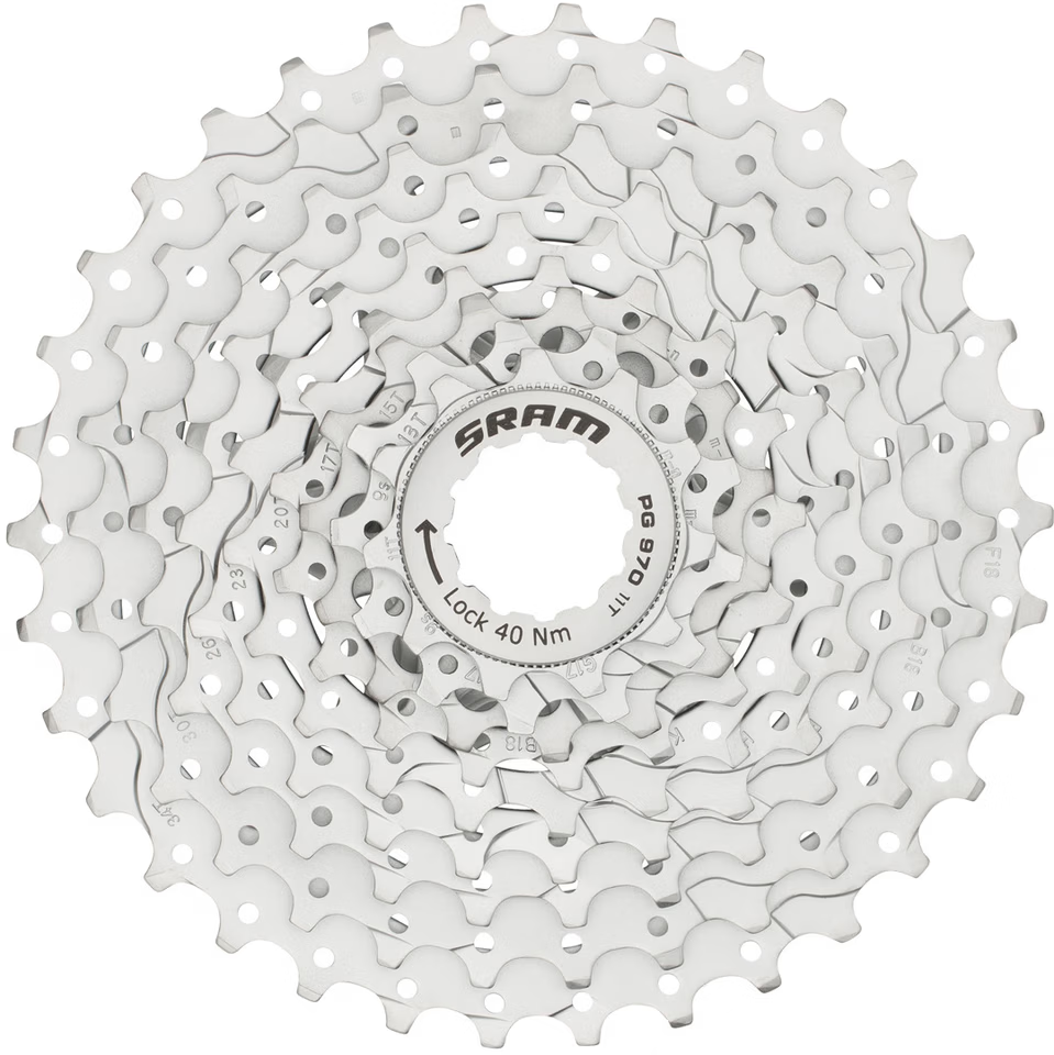 Sram PG-970 Rataspakka 9v 11-34T on kestรคvรค ja laajavรคlitteinen takarataspakka maasto-, trekking- ja hybridipyรถriin.