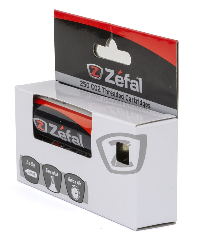 Zefal Co2- 25g patruuna 2kpl pakkaus, patruuna kierteellรค. Nopein tapa tรคyttรครค puhjennut rengas tien pรครคllรค.
