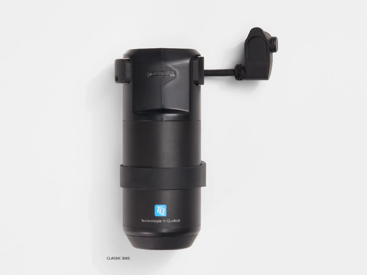 Kiinnityspantaa Trek TQ HPR Range Extender lisรคakun kiinnittรคmiseksi Trek Side Load pullotelineeseen. Panta varmistaa, ettรค akku pysyy mukana kovemmassakin maastoajossa.